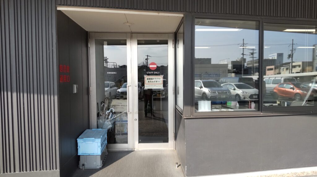 駐車場側にございます職員通用口のご利用を相談者の方には、お願いをしております。